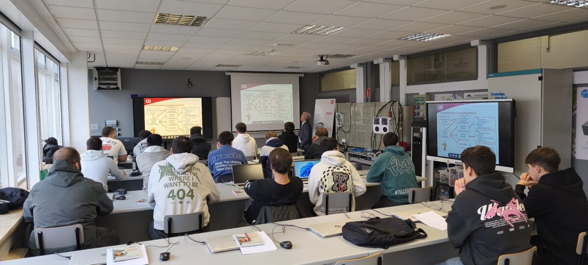 El CIFP Politécnico de Santiago solicitó la colaboración de ASINEC para impartir una jornada de tramitación de instalaciones eléctricas y de telecomunicaciones a los alumnos del segundo curso del Ciclo Superior Sistema Electrotécnicos e Automatizados.