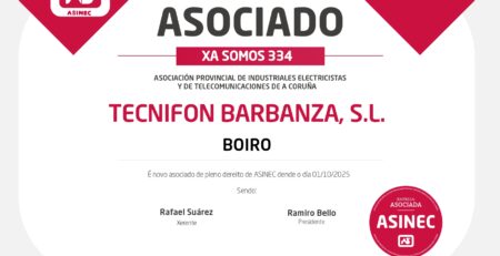 Damos la bienvenida a TECNIFON BARBANZA, S.L. como nuevo asociado de ASINEC. leer más